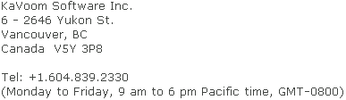 © 2003-2023 KaVoom Software Inc. All rights reserved. Privacy Policy